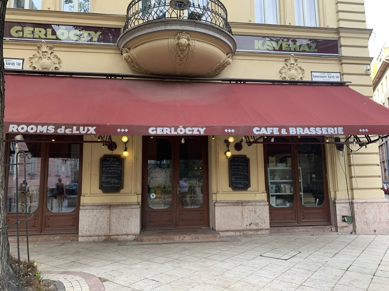 A 19. századból itt maradt földszintes házban volt T. Nagy Tamás sajtkereskedése, ahol francia sajtokat lehetett kapni. A cég zárt teherautóját, amely a sajtkereskedést hirdette, mindenki ismerte a Belvárosban. Úgy tudtam, a sajtkirálynak üzletrésze van a Gerlóczyban is. A Covid első hulláma után a kávéház kinyitott, egyszer meg is ebédeltem ott. Aztán 2020 őszén újra bezárt. A környéken úgy tudják, hogy a bezárás nem végleges.