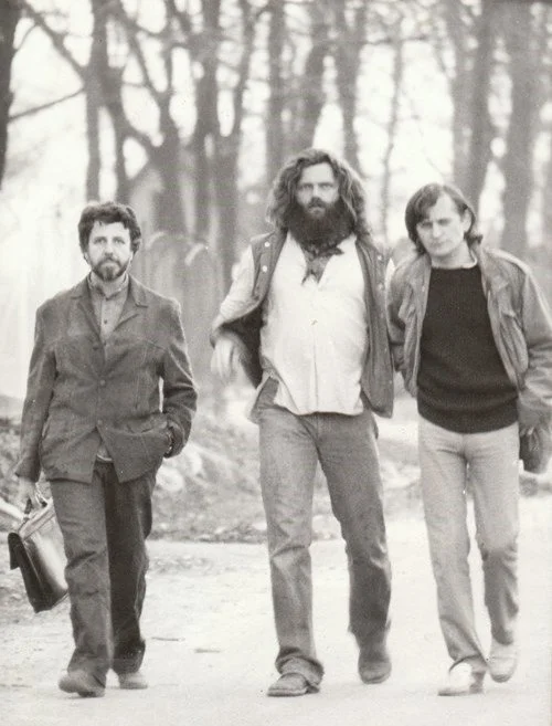 Szerkesztők az erdőben: Kőszeg Ferenc, Nagy Bálint, Szilágyi Sándor.