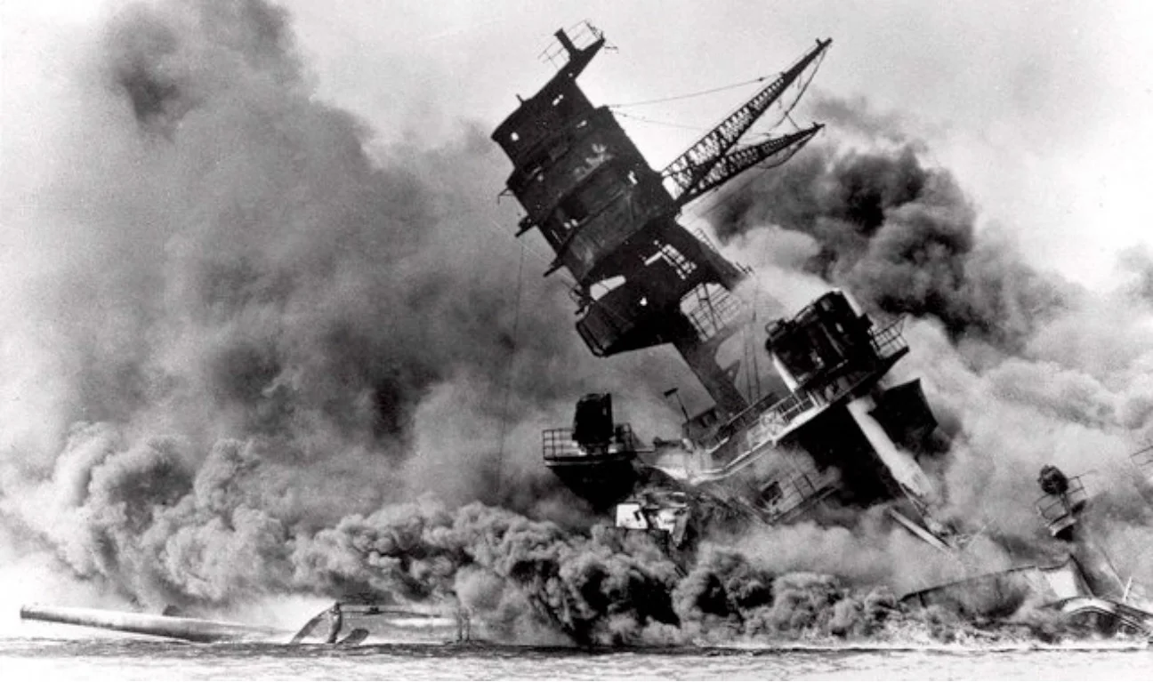 Támadás Pearl Harbor ellen, 1941. december 7. Süllyed a USS Arizona, a fedélzetén ezer tengerésszel